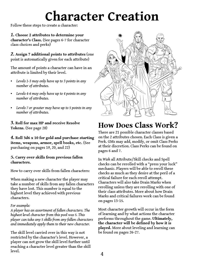 Welcome to Wish—a tabletop role playing game that fuses simplicity with limitless possibility. Every victory and setback teaches a lesson, and only the keenest adventurer will unveil the final hidden message. Bring your creativity and a daring spirit to craft a world uniquely your own. The Wish awaits. Will you reshape the world—or shatter it?